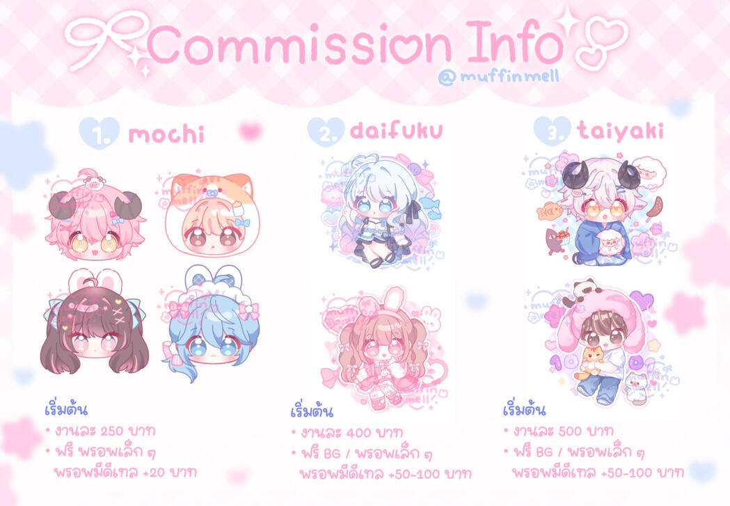 งานแบบ commercial use เปิดรับตลอดค่ะ สามารถทักมาสอบถามได้ค่า